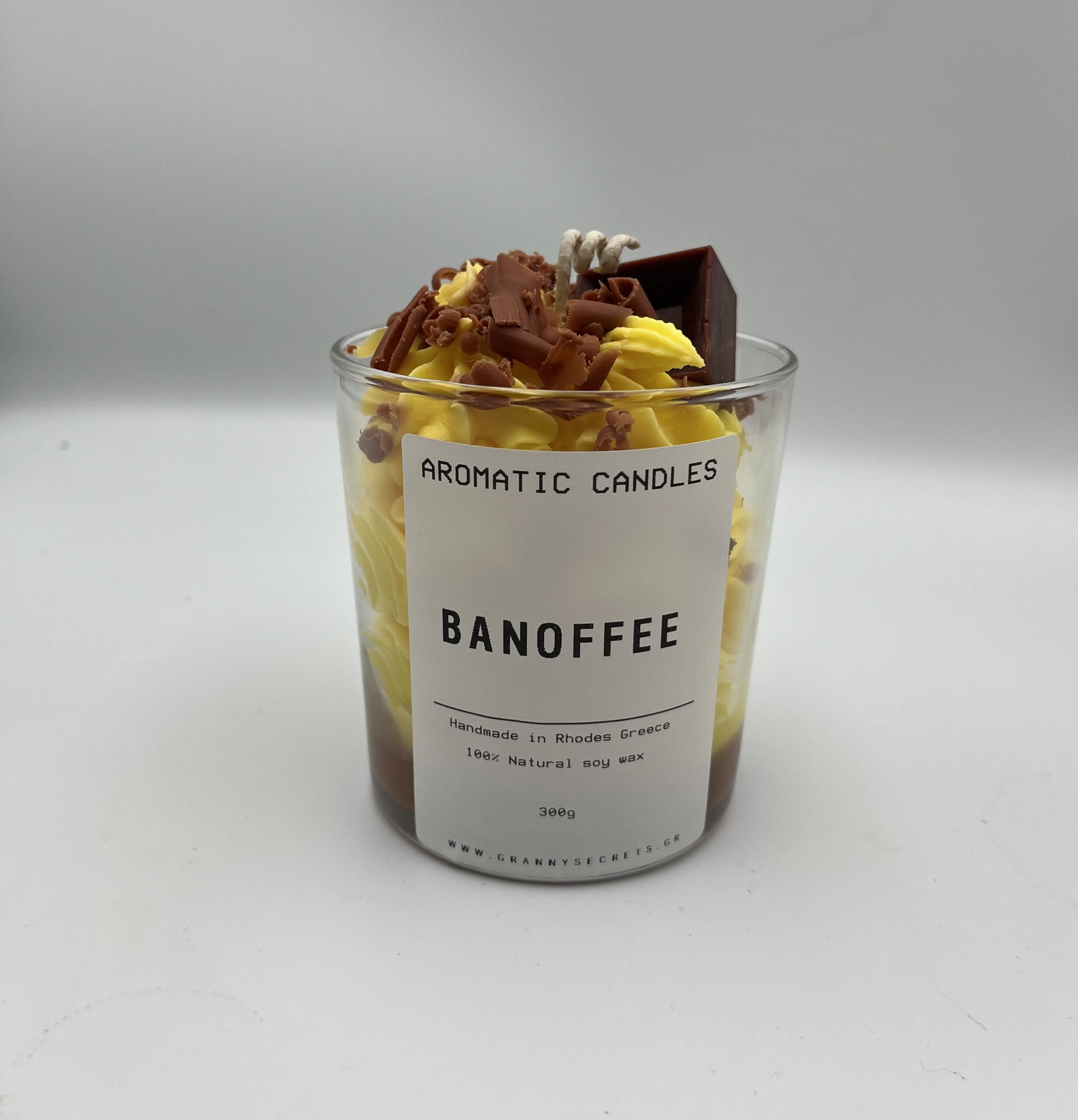Απόλαυσε το “Banoffee Sweet Candle 300g,” ένα χειροποίητο κερί σόγιας με λαχταριστό και κρεμώδες άρωμα που συνδυάζει νότες μπανάνας, ροδάκινου, καραμέλας και γλυκιάς βανίλιας. Αυτό το μοναδικό μείγμα θυμίζει ζεστό banoffee pie και γεμίζει τον χώρο με μια απολαυστική γλυκιά αύρα. Καθαρή, αργή καύση διάρκειας περίπου 45 ωρών, ιδανική για να δημιουργήσεις ζεστή και χαλαρωτική ατμόσφαιρα στο σπίτι ή να το προσφέρεις ως ξεχωριστό δώρο.